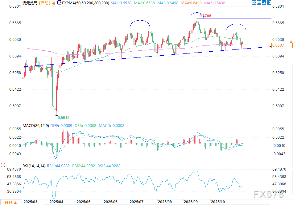 澳元/美元对最新ADP就业报告作出反应。该报告显示,美国上月新增就业岗位超4.2万个,高于4万个的预期中位数,扭转了前一月减少3.2万个岗位的态势。过去几周,ADP报告备受关注——美国正经历史上最长政府停摆期,该报告成为当前唯一的劳动力相关数据。